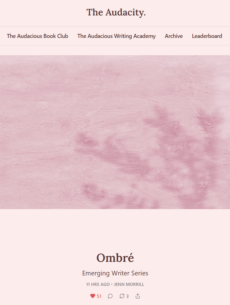 Loved this one too, Jenn! I felt the tension so vividly. I initially thought the story might unfold into a classic ex-wife/ex-girlfriend dynamic, and I loved how much deeper the tension traced through your relationships. The ombré metaphor throughout is lovely — how transitions can be messy and beautiful at the same time. Looking forward to reading more of your essays. Krisztina W